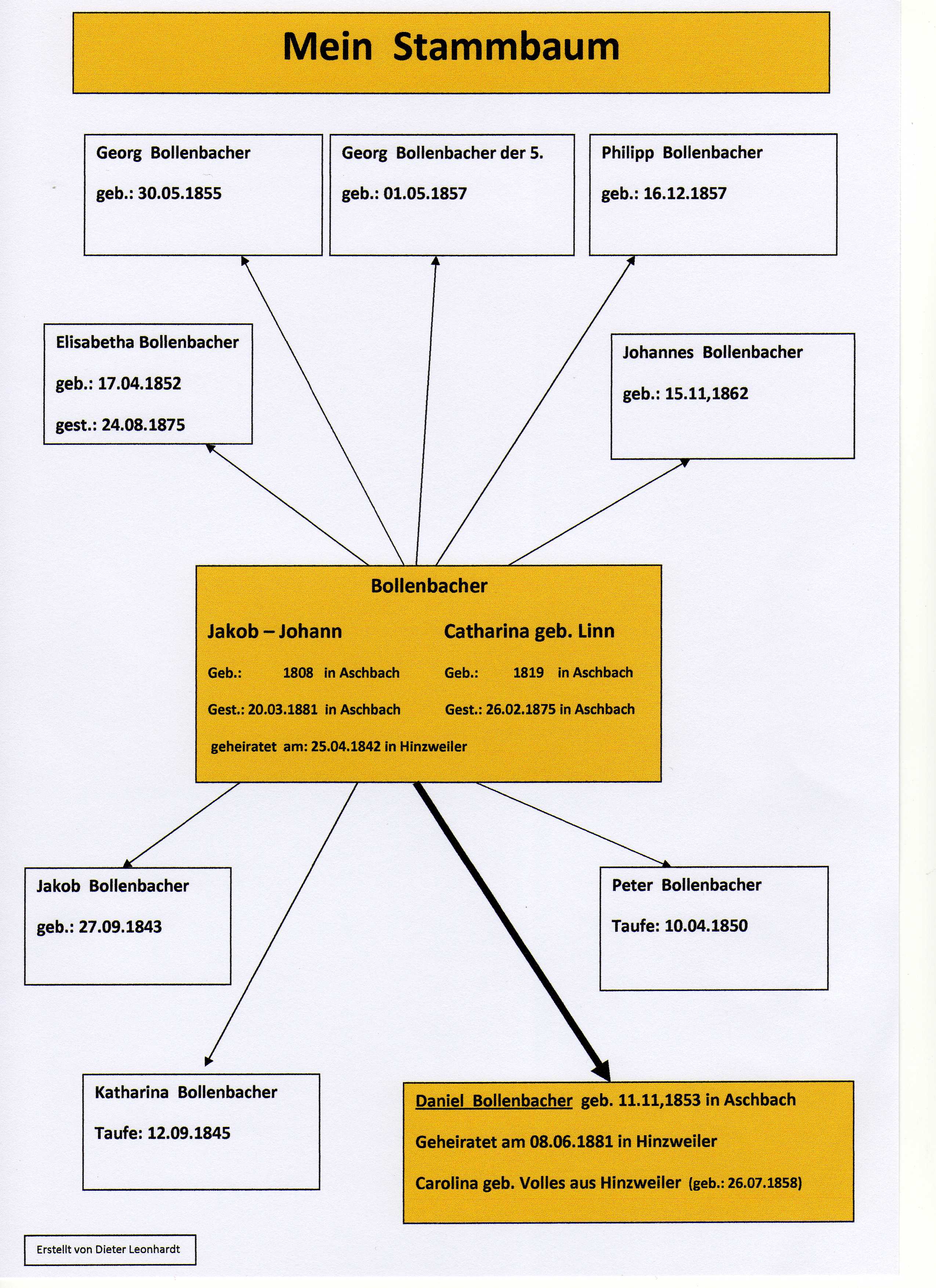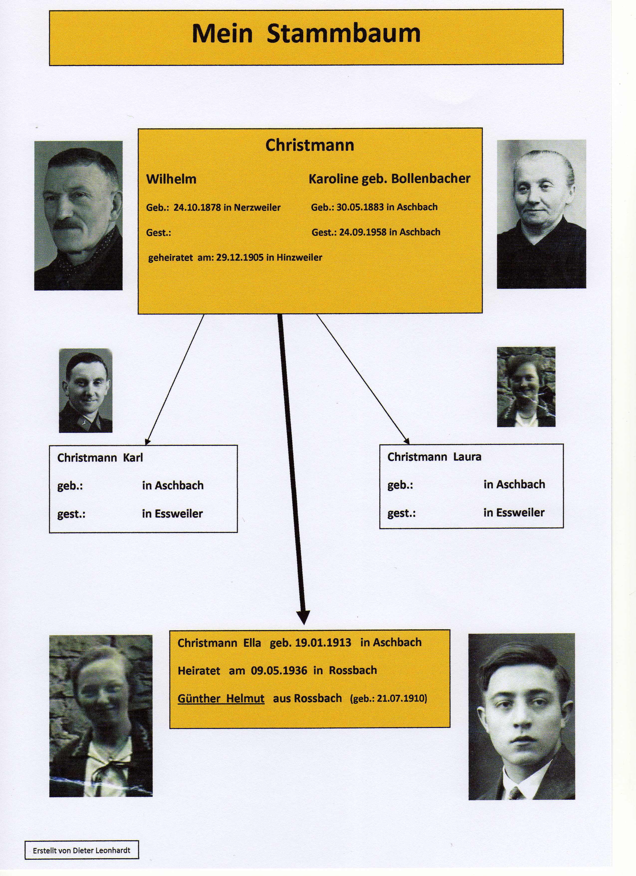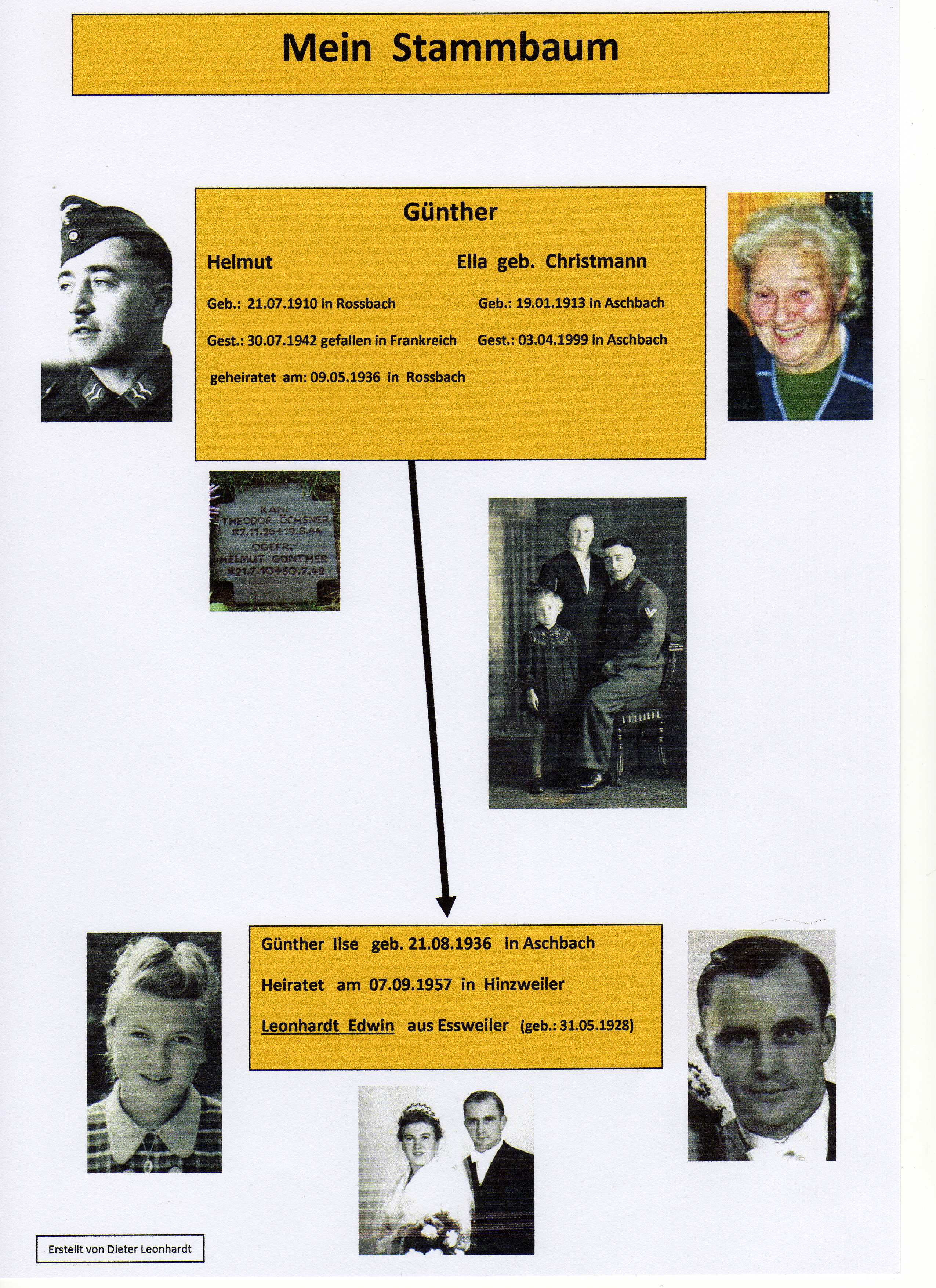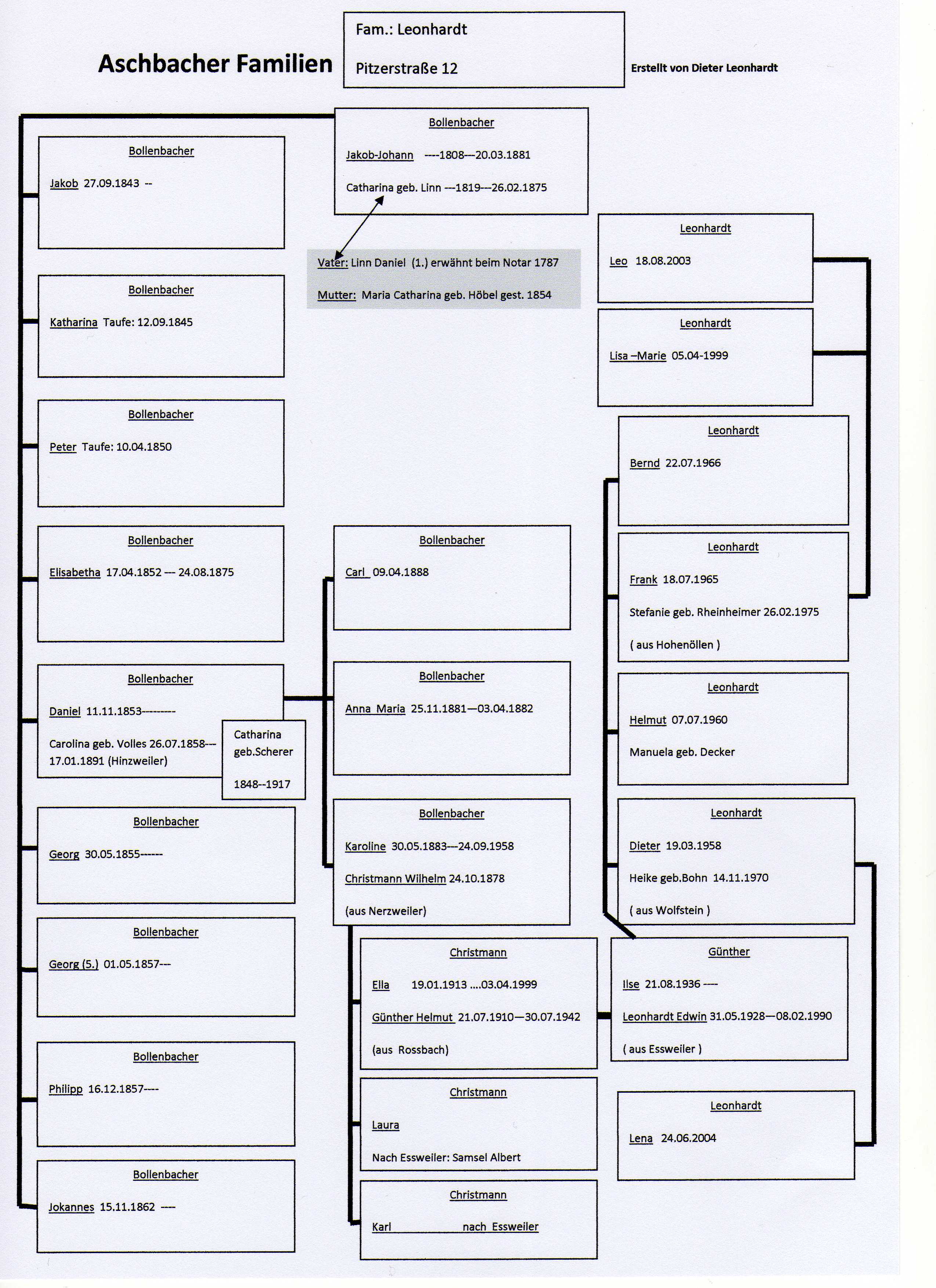 Mein Vater Edwin stammte aus einer Nachbargemeinde, er hat hier in Aschbach meine Mutter Ilse geheiratet, der folgende Stammbaum ist auf den Vorfahren meiner Mutter erstellt. ( der Stammbaum meiner väterlichen Seite ist noch in Arbeit)